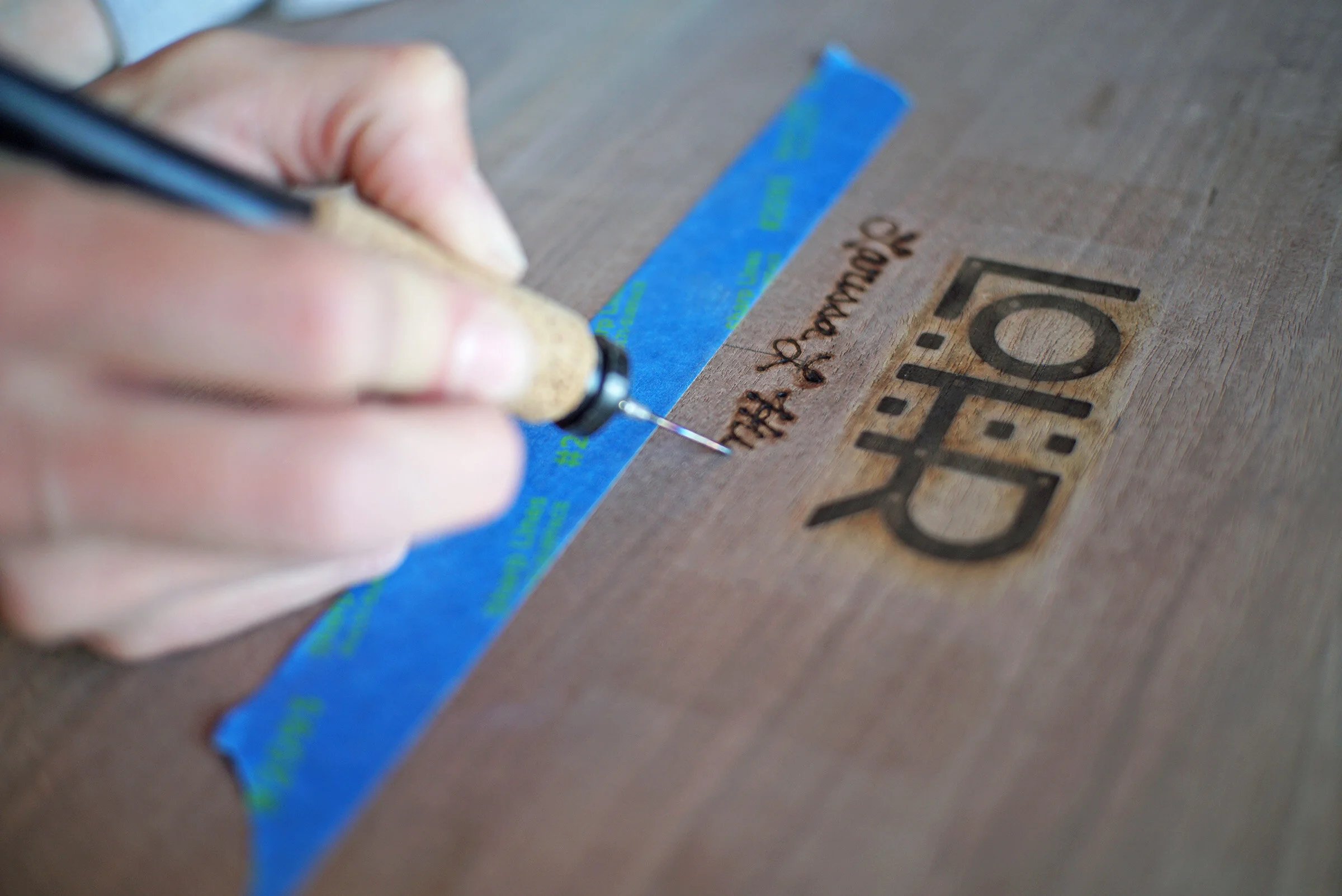 The last things that happen before applying finish includes sanding (no photos of that because, well, it’s pretty boring), breaking the sharp edges to be soft and tactile, and branding/signing the bottom.